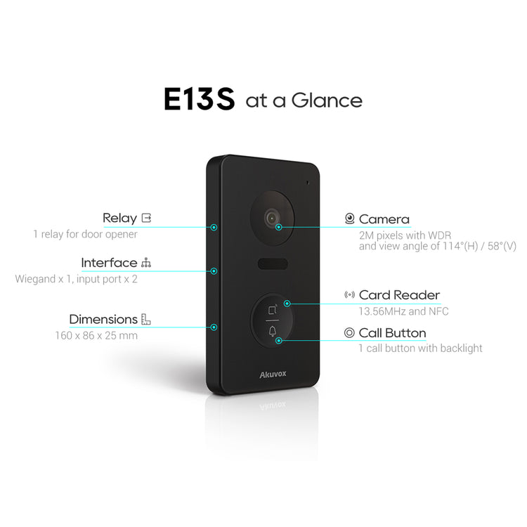 The Akuvox E13S delivers essential video intercom functionality in a compact, installer-friendly design, making it an excellent choice for reliable, everyday entry security.