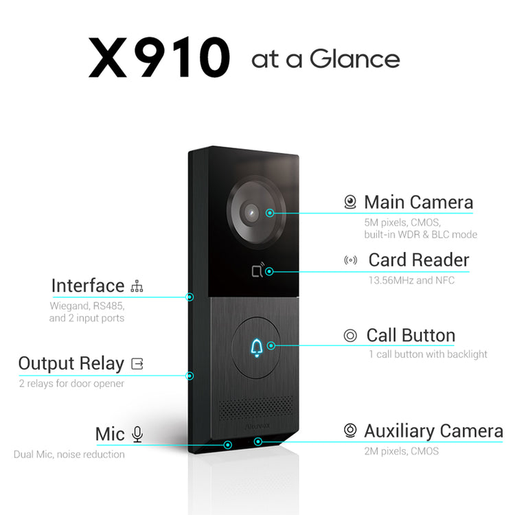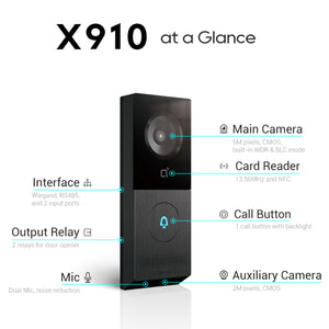 Built on a Linux operating system and compliant with SIP and ONVIF standards, the X910S integrates easily with third-party platforms, NVRs, and access control systems. The aluminum front panel and wide operating temperature range ensure reliable performance in demanding outdoor environments.